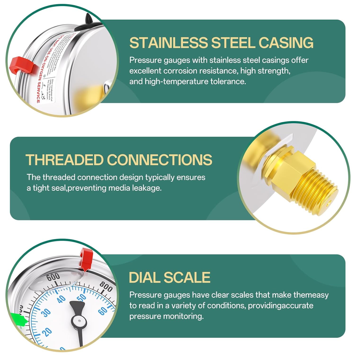 - SIZE: 2.5" dial size, 1/4" NPT back mount