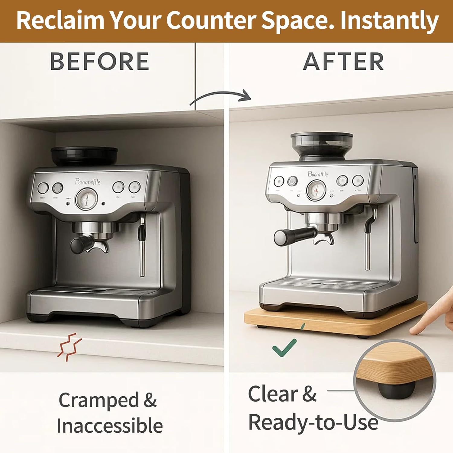- SOLID BAMBOO, NOT FLIMSY PLASTIC Crafted from heavy-duty, multi-layered bamboo, this tray is your appliance's unshakable stage. Lab-tested to support 40lbs without flexing, it offers the superior, wobble-free stability your expensive machines deserve.