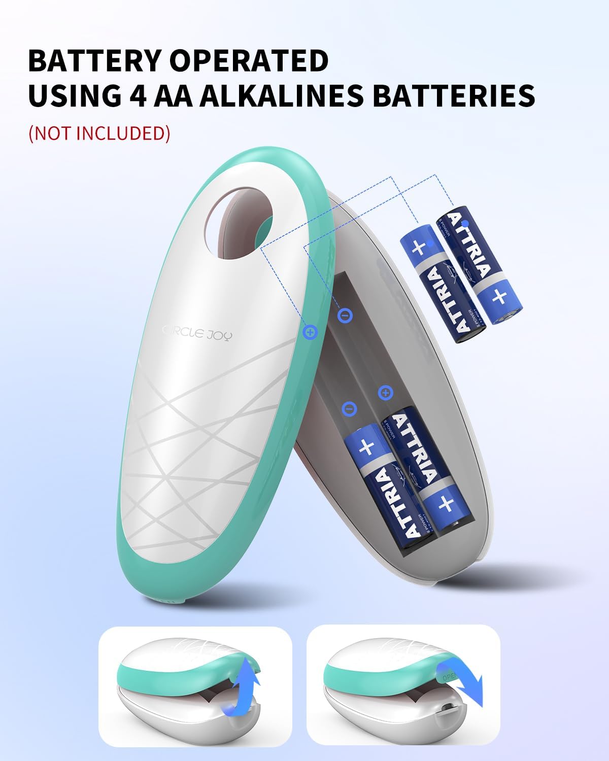 - Powerful Battery Operated - This can opener electric requires 4 AA batteries (not included) to provide powerful performance. It can easily open all types of cans without effort. (Not suitable for pull-tab or soda cans.) The opening process usually takes 30-40 seconds, depending on the size and material of the cans.
