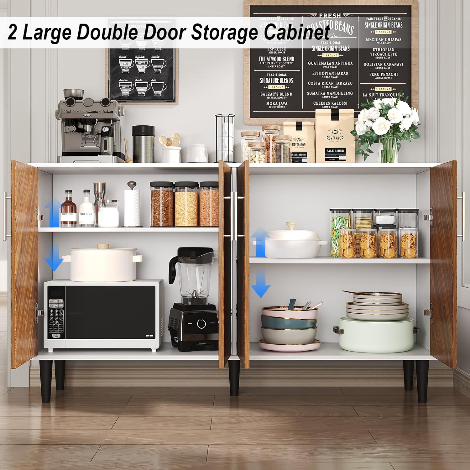 4 EVER WINNER 55" Sideboard Buffet Cabinet with Storage, Coffee Bar Cabinet with Adjustable Shelves, Kitchen Storage Cabinets with 4 Doors for Kitchen, Dining Room