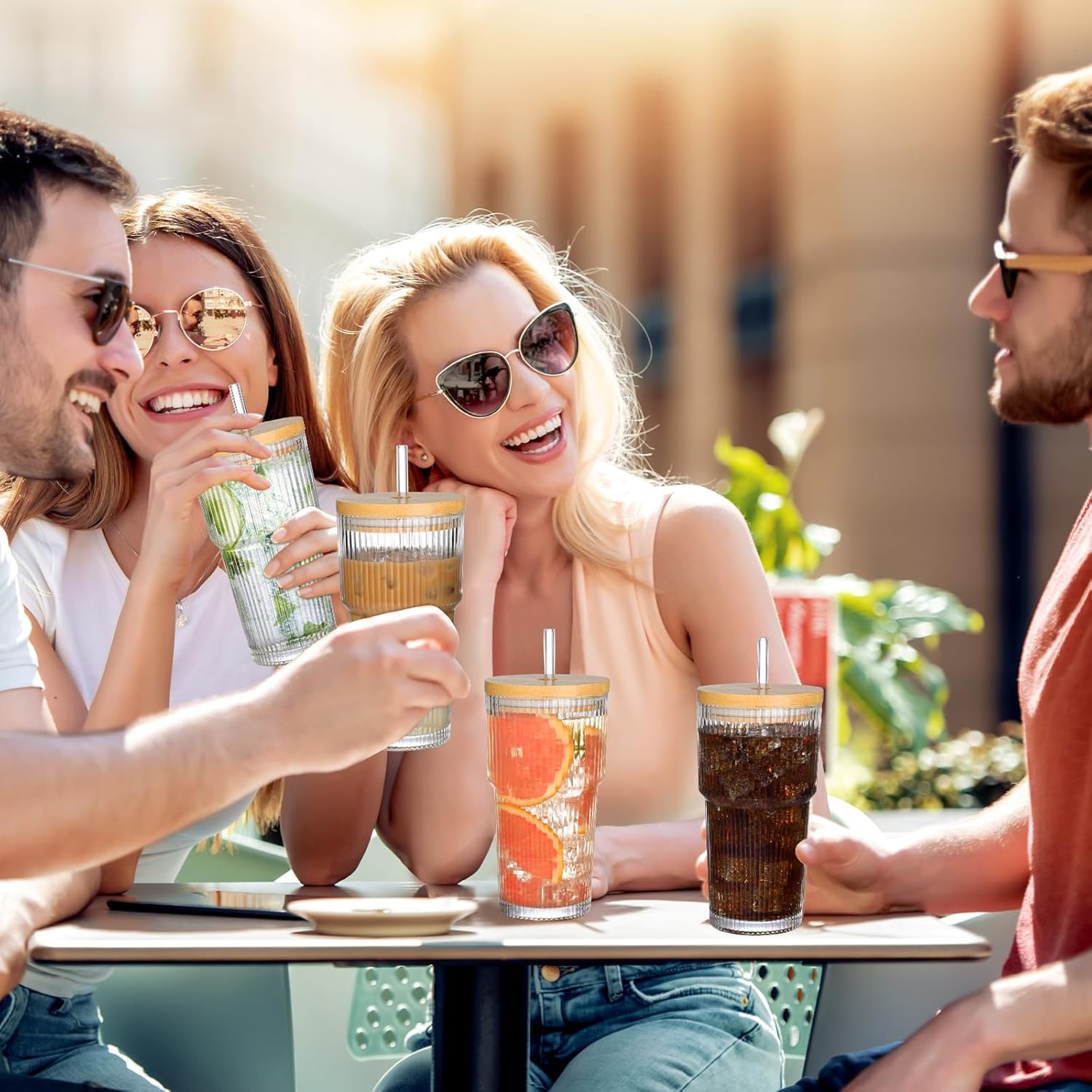 - Premium Ribbed Glass Design: The 20oz Glass Coffee Cup is rafted from thick, high-quality glass, these tumblers are not just elegant with their ribbed texture but also built to last. Set Included:4PCS 20OZ Ribbed Glass Cups with Bamboo Lids, 4PCS reusable glass straws, 2PCS cleaning brushes.