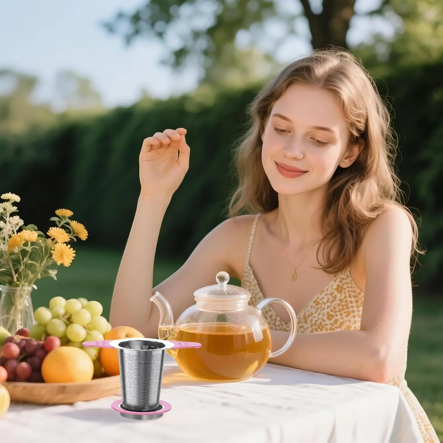Tea Infuser for Loose Leaf Tea,18/8 Stainless Steel Tea Infuser with Heat Proof Silicone Handles,Extra Fine Mesh Tea Strainers Filter Fine Tea Leaves Effectively,Fits TeaPots/Mugs-Pink