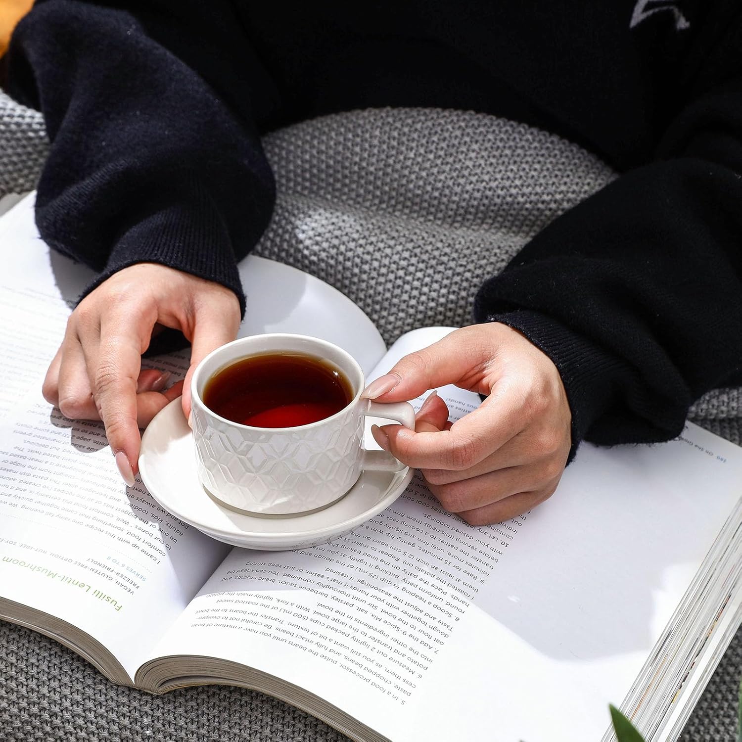 - Elegant Embossed Design: Featuring four unique embossed patterns, these espresso cups combine a classic coffee cup shape with artistic details; The intricate texture adds charm and elegance, turning an ordinary cup into a beautiful tabletop piece