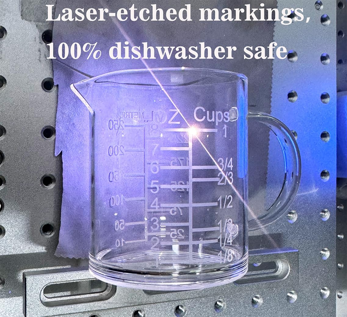 - 【Etched Graduations】: The measuring cup features etched graduations in three units (Cup, ml, OZ). The front of the handle displays US Cups and OZ measurements, while the back shows ML measurements for precise work. This ensures you can measure all types of liquids and follow any recipe with ease. It is 100% dishwasher safe, allowing you to trust it for hassle-free cleaning