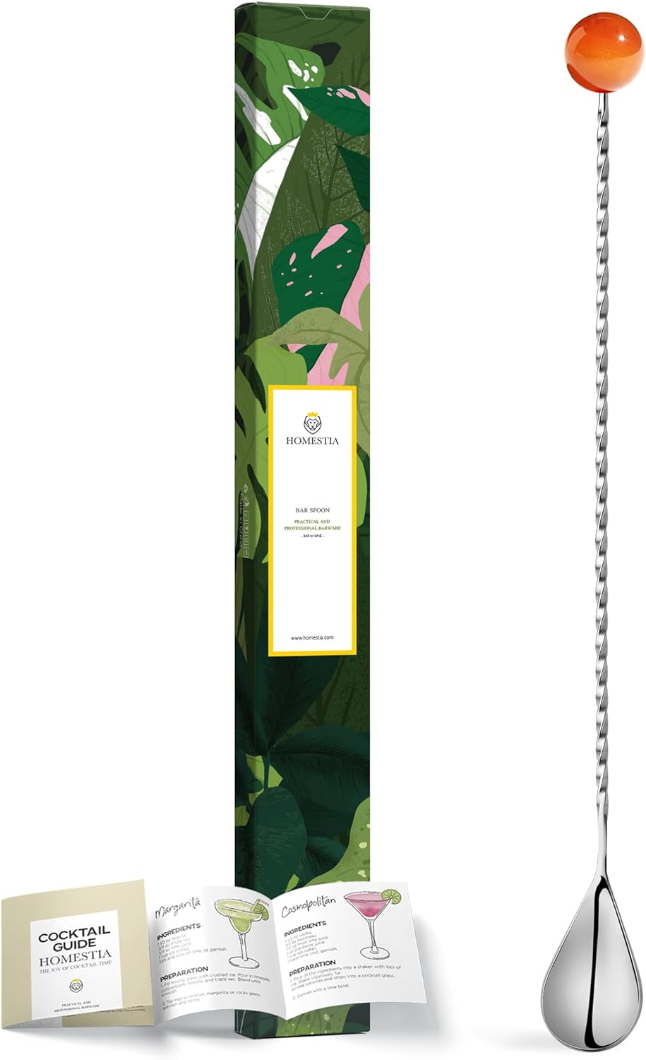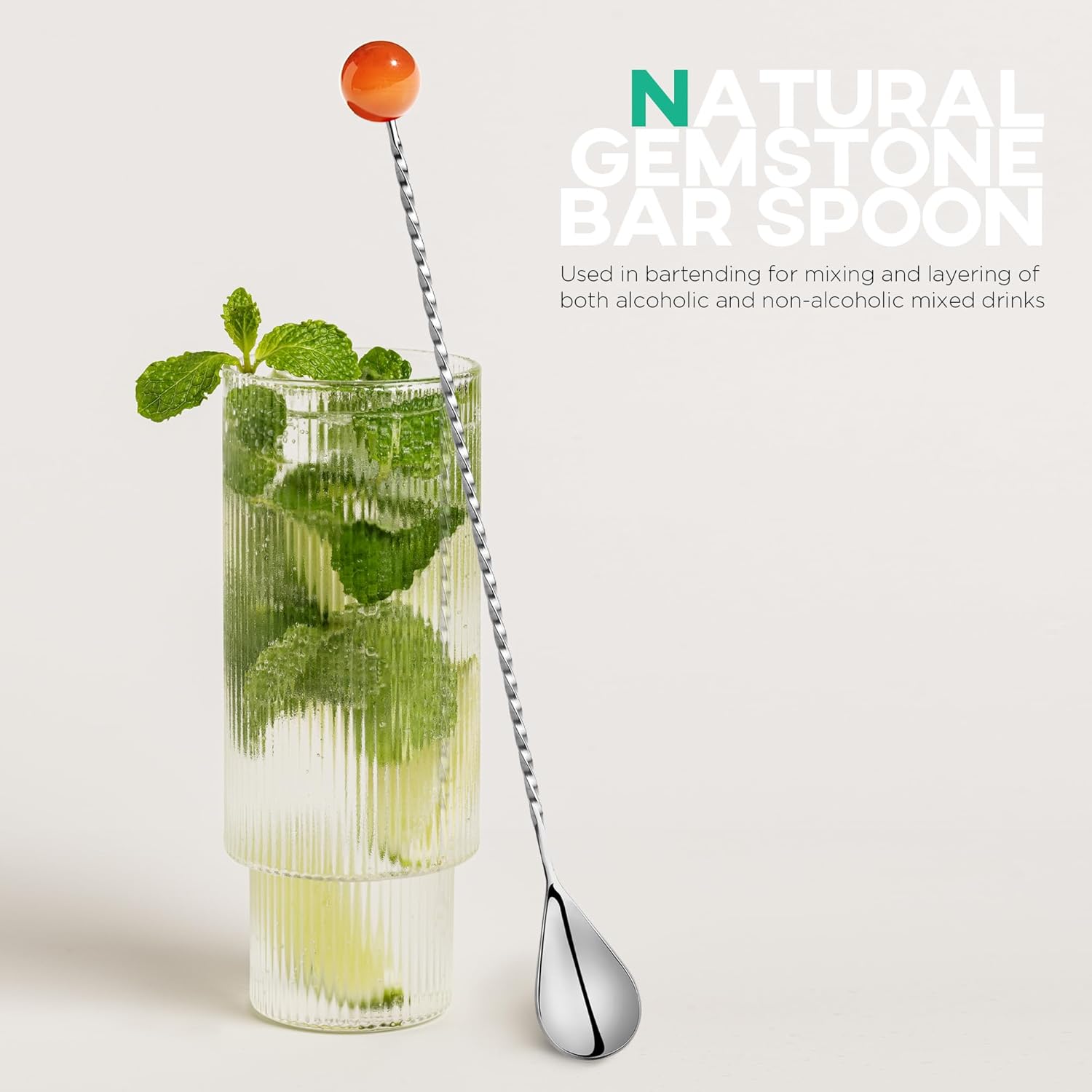 Homestia 12-Inch Natural Gemstone Bar Spoon, 304 Stainless Steel Cocktail Spoon for Layering Long Spiral Handle Mixing Spoon Stirrers for Drink (Orange)