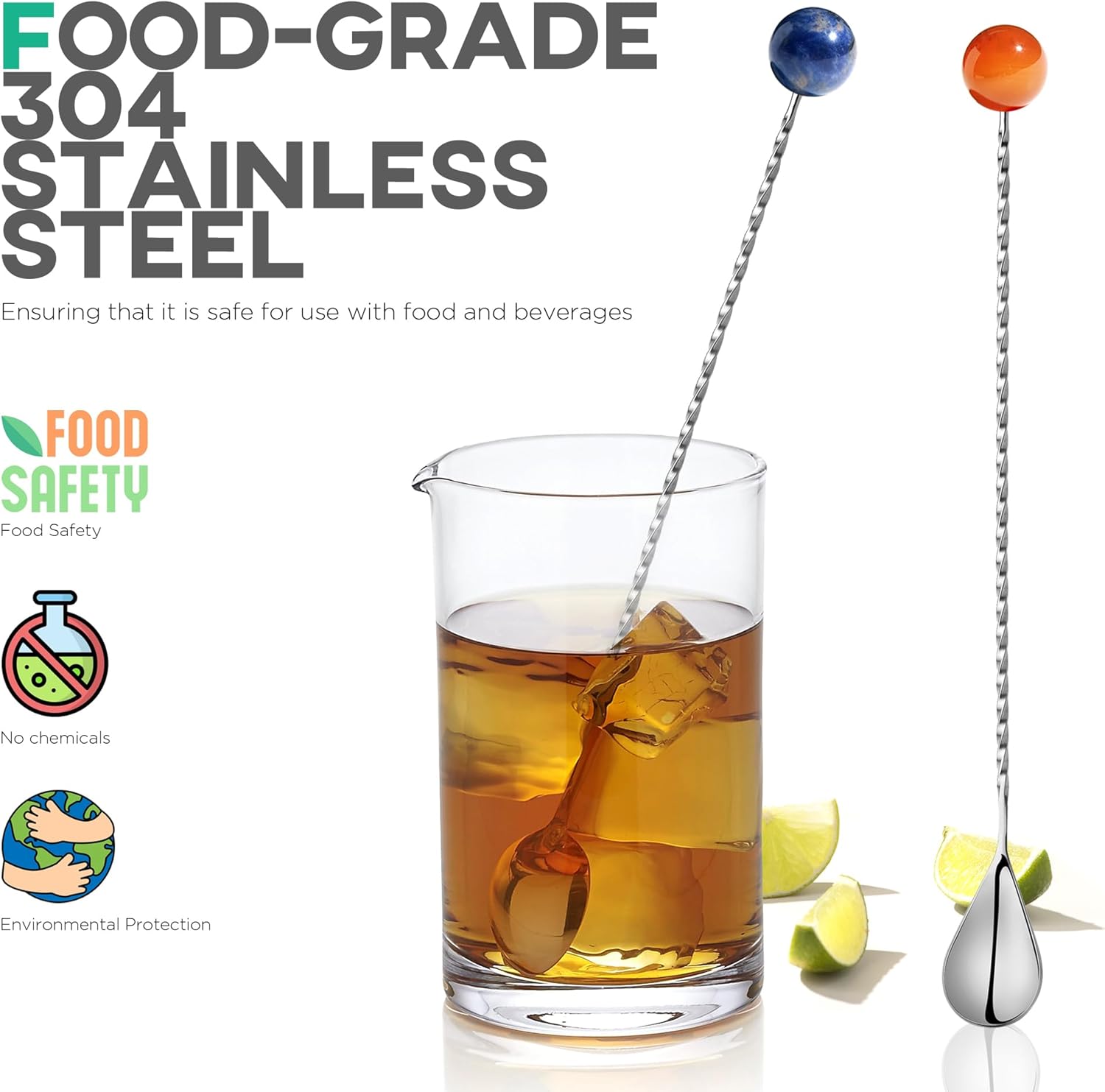 - OPERATION: The natural gemstone on the top of the spoon adds a unique and charming style to your bar tools, and a spiral shaped rod in the middle for better control and grip, designed to spin effortlessly. Perfect for stirring drinks, mixing cocktails, juices, smoothies or milkshakes.