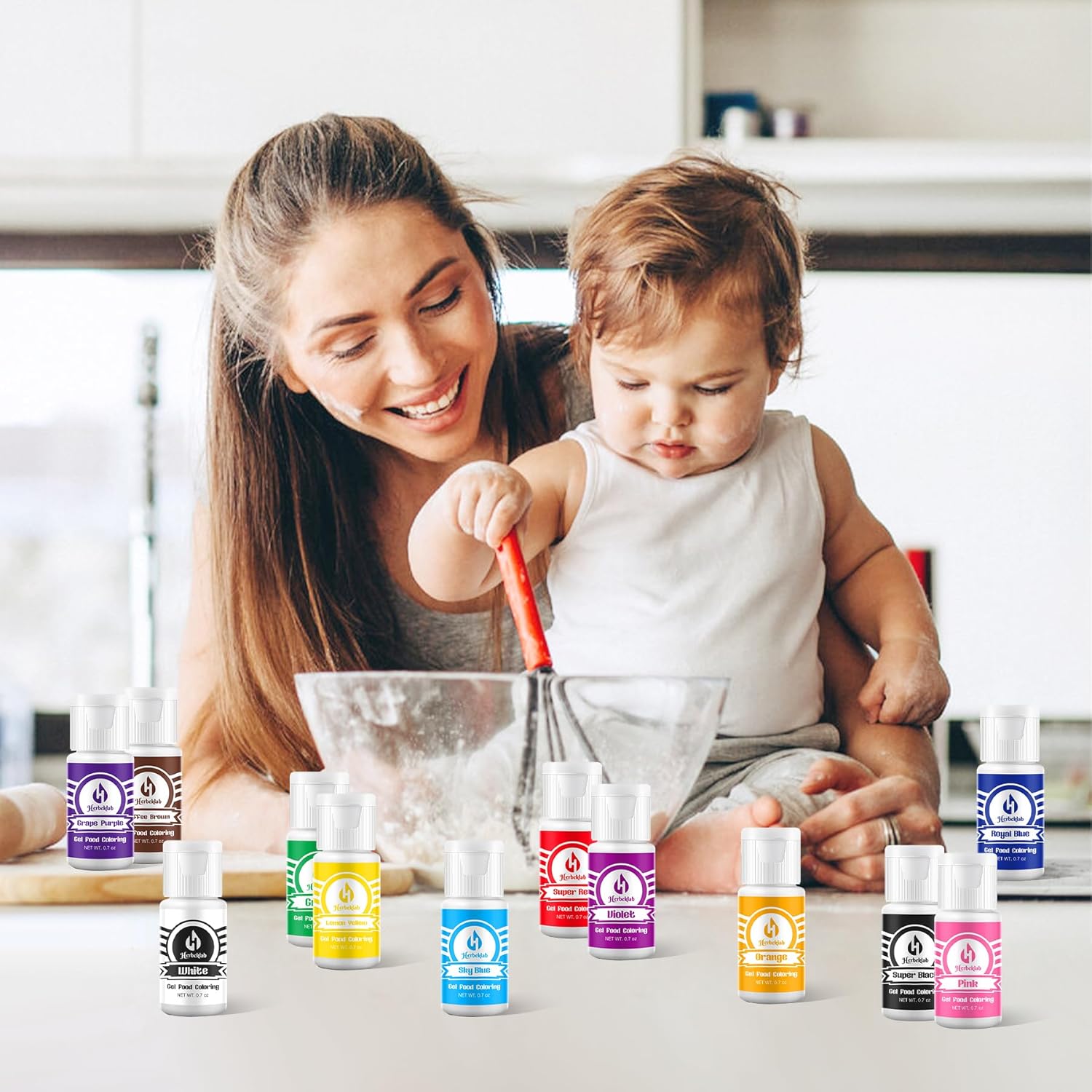 Gel Food Coloring 12 Colors x 0.7 oz Herbeklab Concentrated Gel Based Food Dye Vibrant Icing Colors Neon Food Coloring for Baking Cake Decorating Cookies Fondant