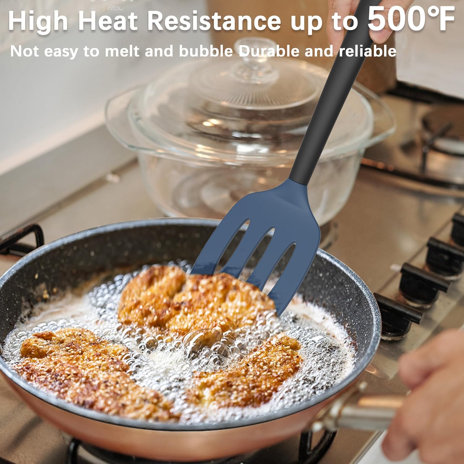 - [Comfortable Silicone Handle]: These silicone kitchen utensils are designed with a sturdy plastic core and thickened silicone handle for a firm, heat-insulated grip, the slim head ensures precise control