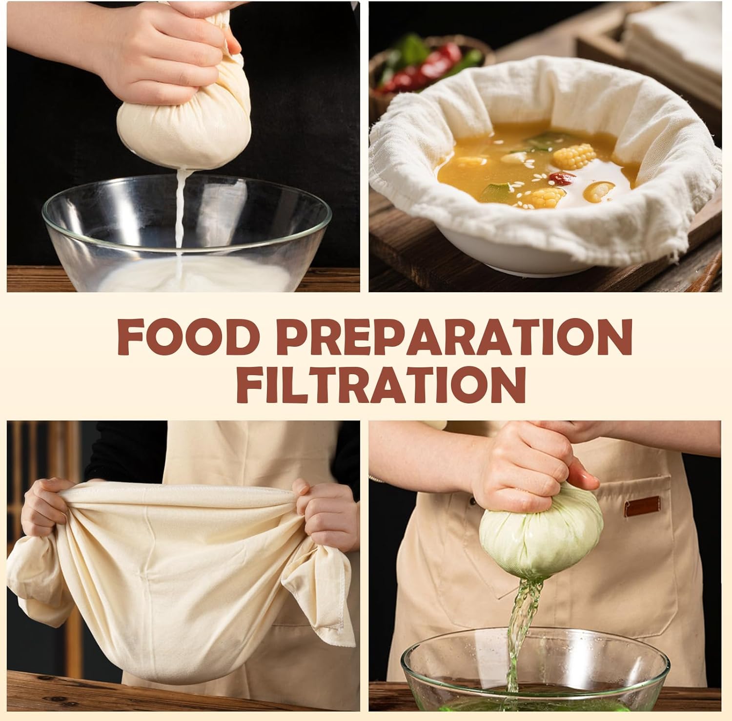 - 【Reusable & Durable】Made from tightly woven cotton, our cheese cloths can withstand the rigors of frequent use, whether using them to strain yogurt, make cheese, or filter broths. No more worrying about rips or tears after a few uses. But the durability doesn't stop there. These straining cloth are highly reusable. After each use, simply wash them in the sink with mild soap and warm water, or toss them in the washing machine for a more thorough clean. They'll come out looking and feeling as good as new, ready for your next culinary adventure.