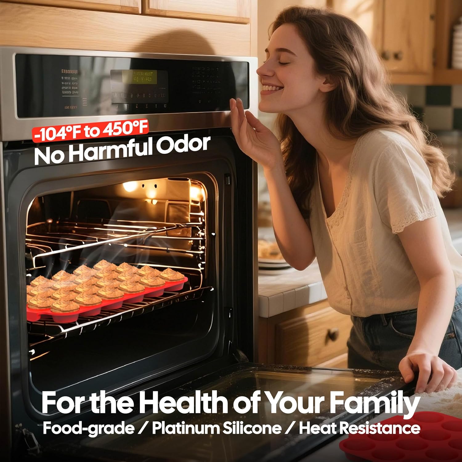 - 【PERFECT NONSTICK RELEASE & EASY CLEANING】 Experience effortless baking and cleanup! Our muffin pan is made from premium food-grade silicone with an ultra-nonstick surface. Your muffins, cupcakes, or brownies pop out perfectly in one piece, every time. After baking, simply rinse with water or place it in the dishwasher for a hassle-free clean. No more scrubbing or soaking
