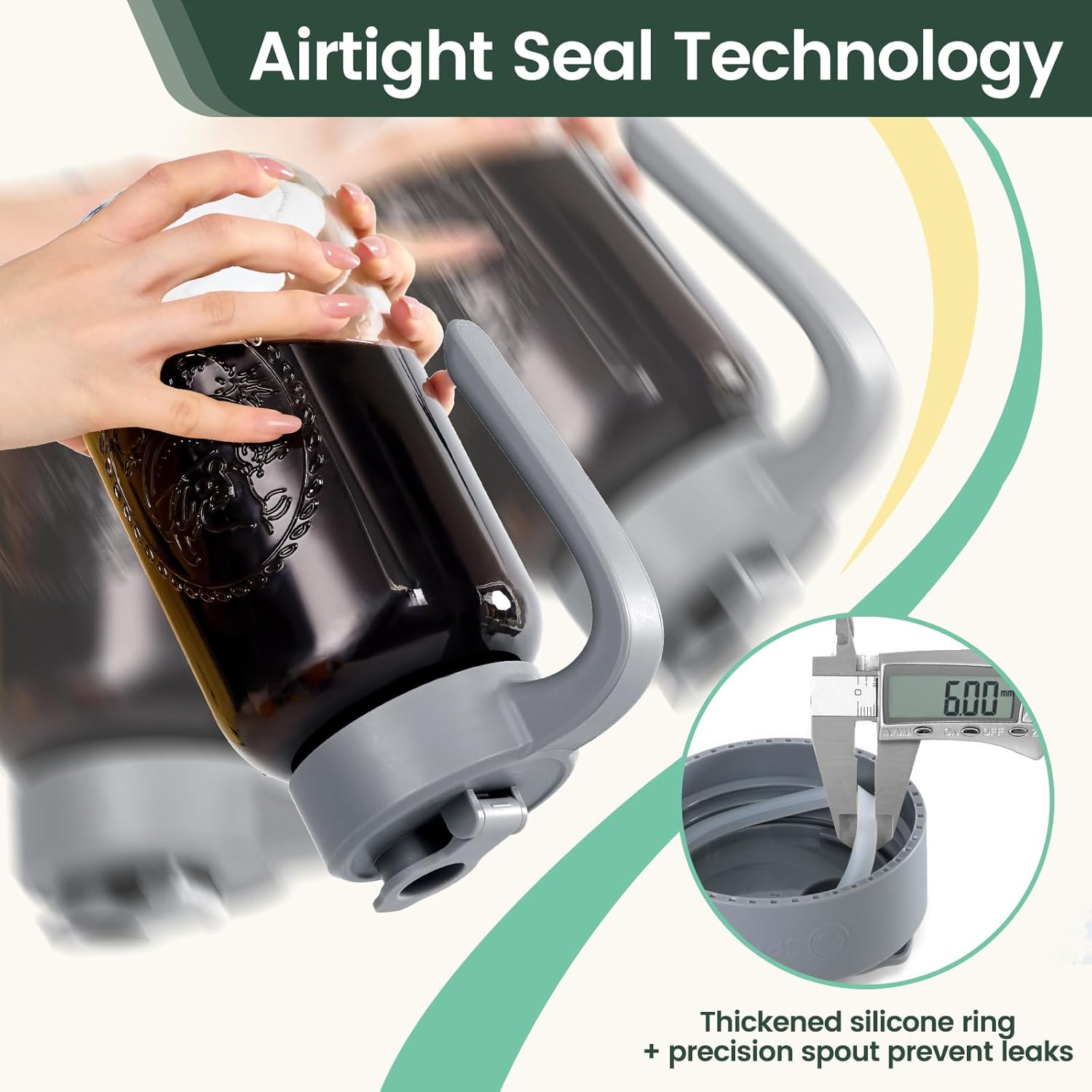 - Airtight and Leakproof Storage: Our Mason Jar Pitcher features an airtight and leakproof silicone seal, ensuring a seamless and mess-free storage experience. Keep your contents fresh and prevent leaks and drips, whether you store it in the fridge, on the counter, or in the pantry.