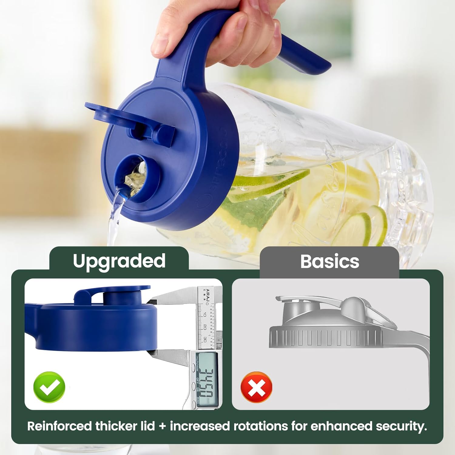 - Airtight and Leakproof Storage: Our Mason Jar Pitcher features an airtight and leakproof silicone seal, ensuring a seamless and mess-free storage experience. Keep your contents fresh and prevent leaks and drips, whether you store it in the fridge, on the counter, or in the pantry.