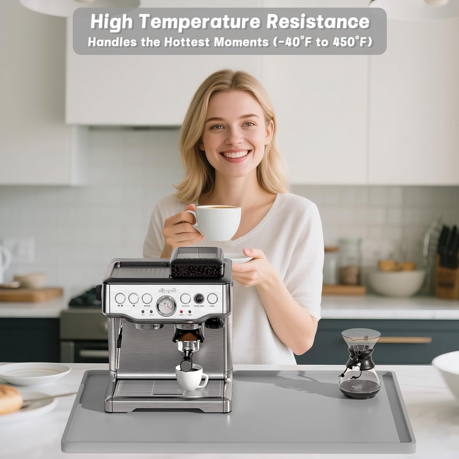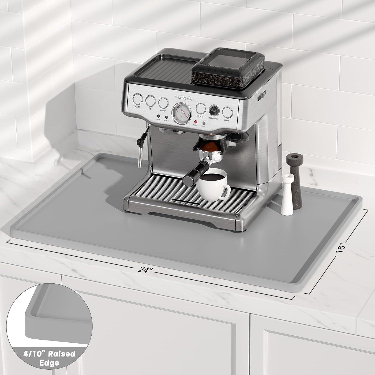 - Multi-Use Silicone Mat for Coffee & Kitchen: Fits 16"x24" espresso machines (Breville/De'Longhi). Use as pet food mat, blender pad, or dish drying mats for kitchen counter. A barista-approved essential for homes, cafes, and RVs – where mess meets style