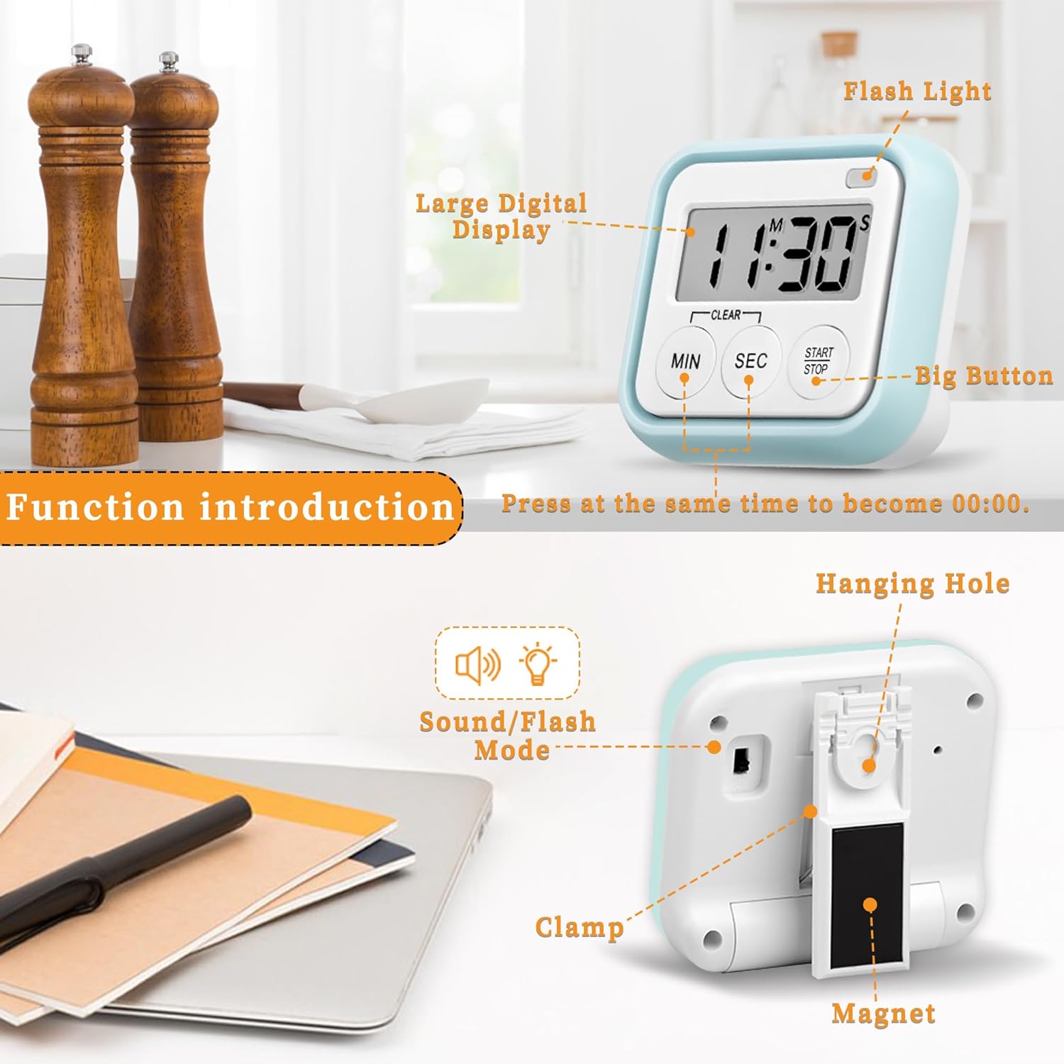 - Flashing Light Mode: Digital timer can adjust the alarm and silent mode according to different needs. It is not only suitable for cooking, baking, exercising, brushing teeth and doing housework, but also for offices, study rooms and libraries, etc.