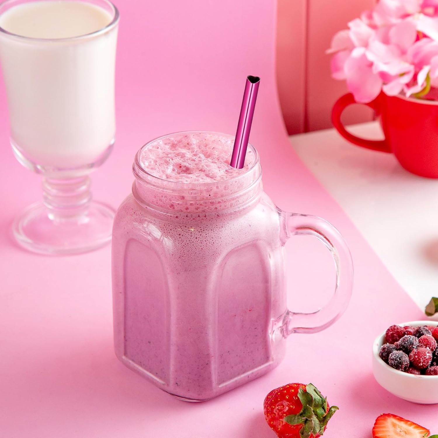 - Fun & Stylish Heart-Shaped Design: This set includes 16 reusable magenta stainless steel straws with a unique heart shape, adding a fun and romantic touch to any drink. Perfect for stirring and sipping cocktails, iced coffee, smoothies, and hot beverages.