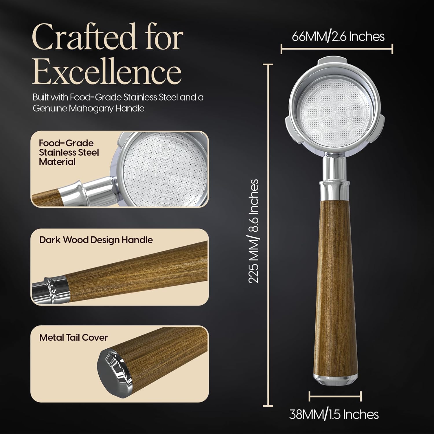 - High-End Craftsmanship, Built To Last - Crafted from solid stainless steel for heat retention and durability, this 54 mm bottomless portafilter features a hand-finished mahogany wood handle for comfort and elegance. Unlike plastic or lightweight builds, this portafilter 54mm is made for serious daily use.