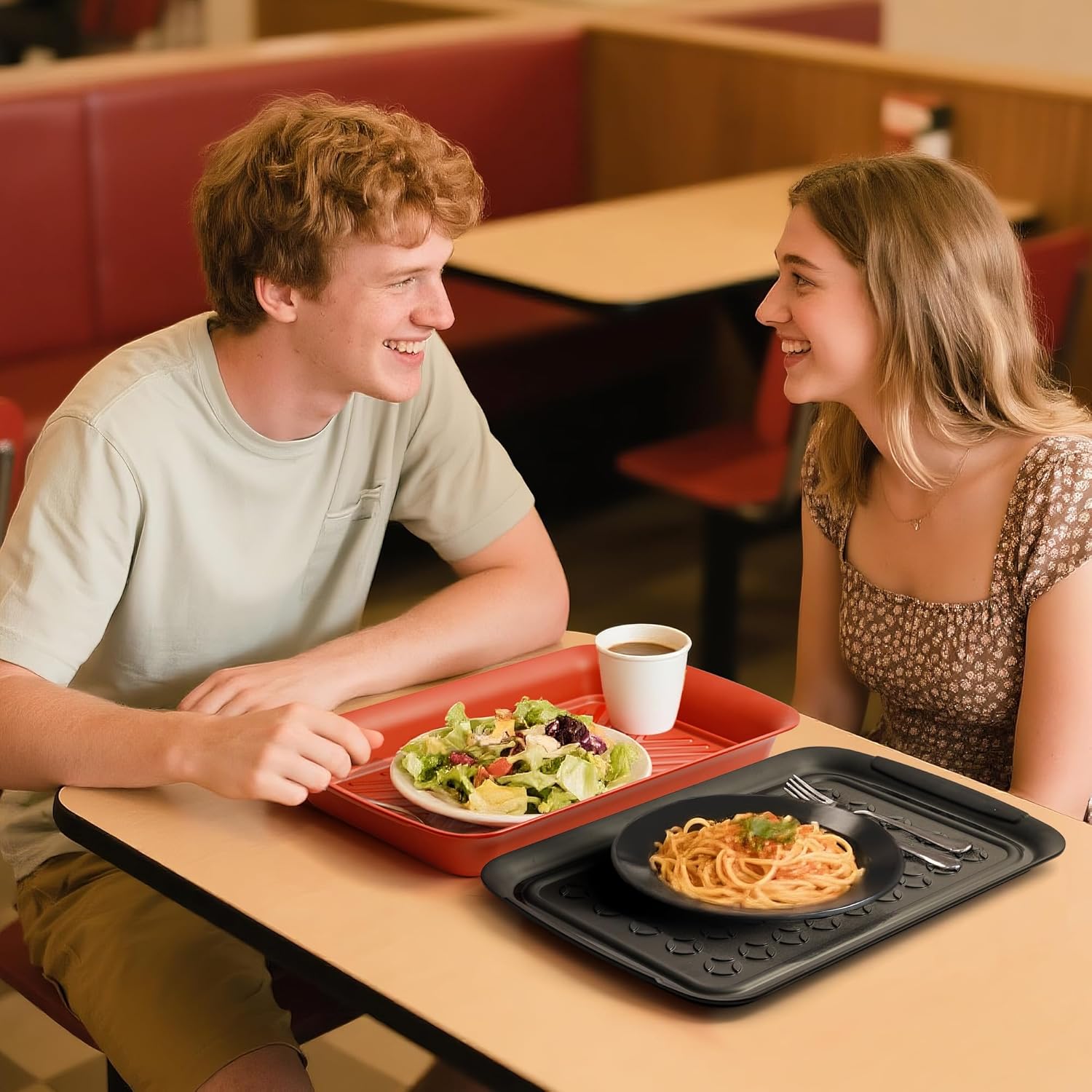 TP Grill Prep and Serving Tray, Deep BBQ Tray for Meat Marinating and Food Plating, Melamine Serving Platters Set of 2, Black and Red