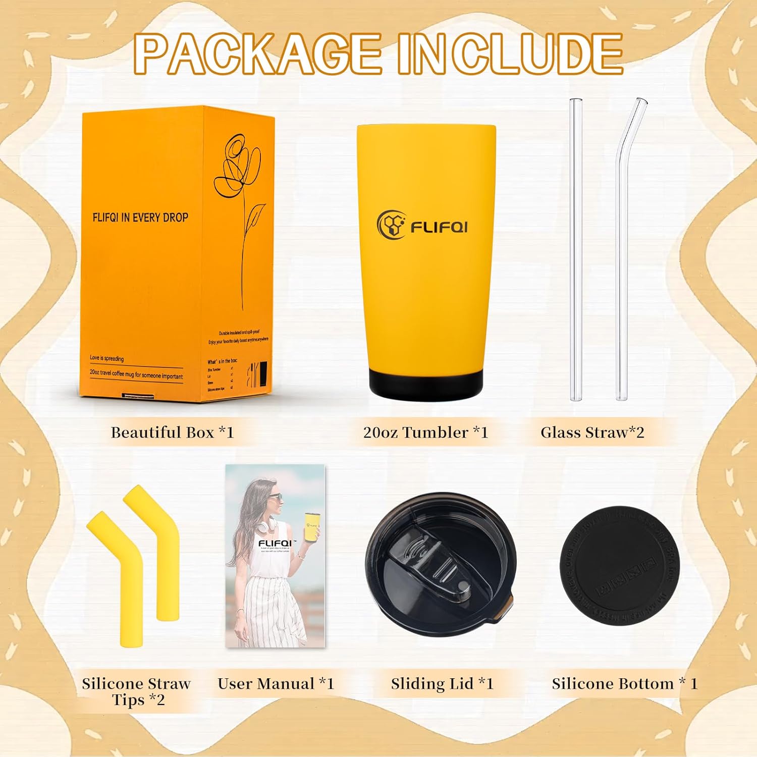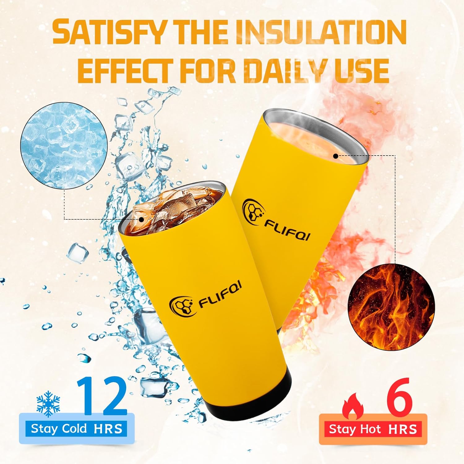 - DOUBLE WALL INSULATED DESIGN: FLIFQI 20oz tumbler are made of Food-Grade 304 18/8 stainless steel,rust-proof,unbreakable and long-lasting.Travel coffee mug with lid adopts the technology of double walled vacuum insulation that keep beverages hot up to 8 hours or cold up to 12 hours and prevent sweating or condensation