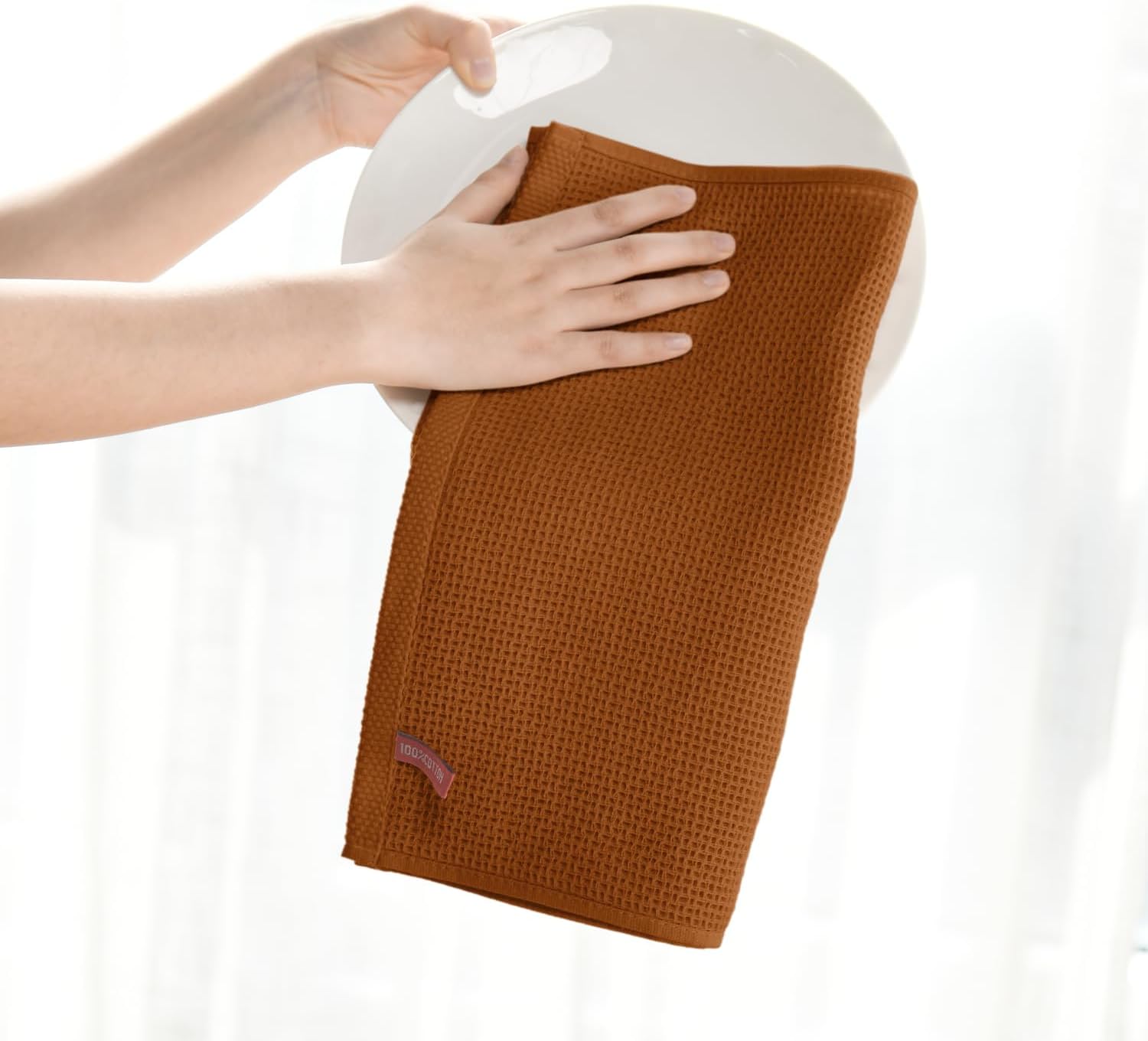 Artoid Mode 100% Cotton Caramel Waffle Weave Kitchen Dish Cloths, 12x12 Inch Ultra Soft Absorbent Quick Drying Kitchen Dish Towels Set of 6