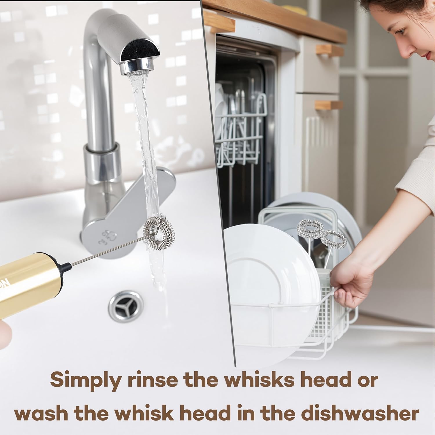 - Durable Stainless Steel & Easy to Clean- Built with stainless steel, this handheld milk frother includes a detachable whisk for quick cleaning. Designed for long-lasting performance.