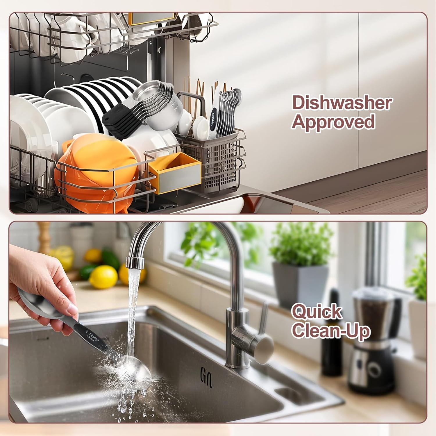 - Non-Slip Silicone Handles: Unlike slippery all-metal measuring tools, our stainless steel cups/spoons have heat-resistant silicone grips (450°F) for a secure hold—even with oily or sticky ingredients