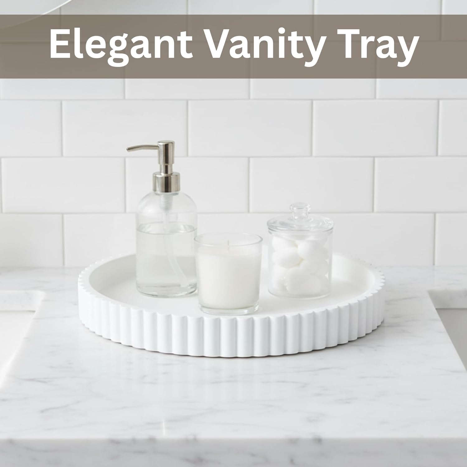 13-Inch Round Coffee Table Tray - Concrete bandejas decorativas Round White Decorative Tray for Coffee Table Decor - Table Centerpieces Kitchen Island Trays Decorative Trays - Dining Room Tray White