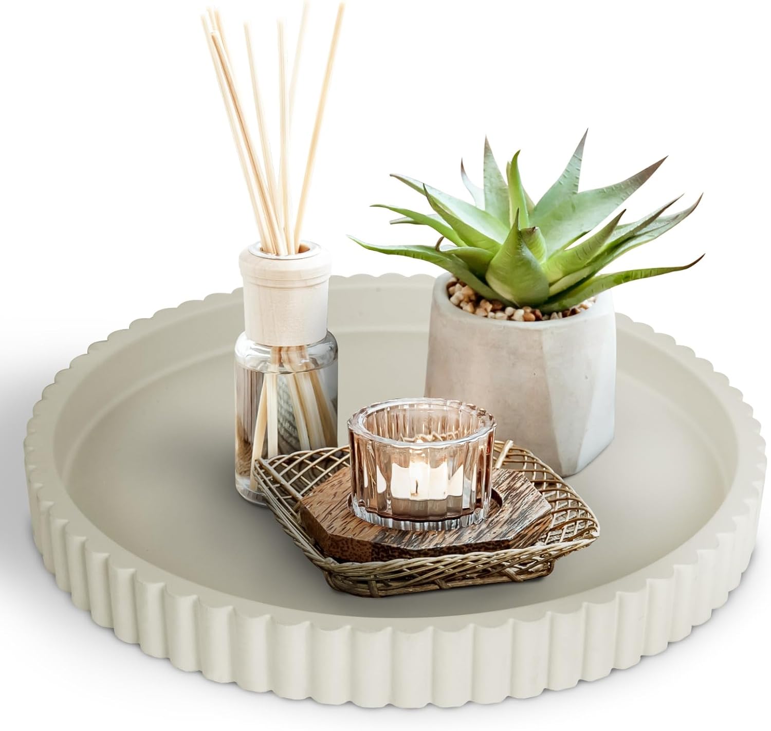- Tray Decor Excellence: This 13-inch round tray for coffee table serves as an exquisite tray decor, enhancing the elegance of table centerpieces with its premium concrete construction, making it a standout piece in any setting.