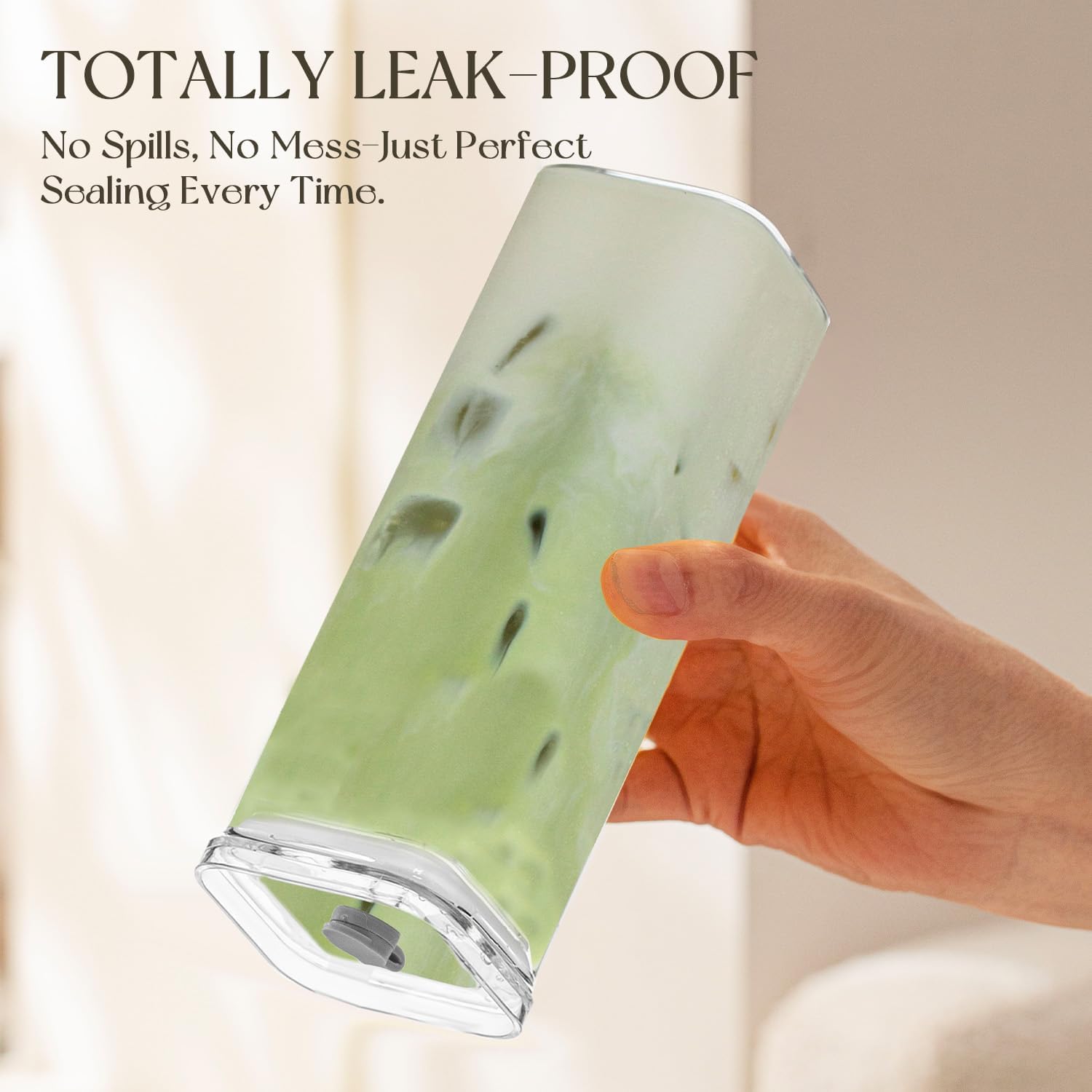 - 12 Pack Square Glasses with Lids & Straws – Includes 12 high-quality square glasses, each featuring a leak-proof lid and glass straw, perfect for large families, parties, or on-the-go use while keeping drinks fresh.