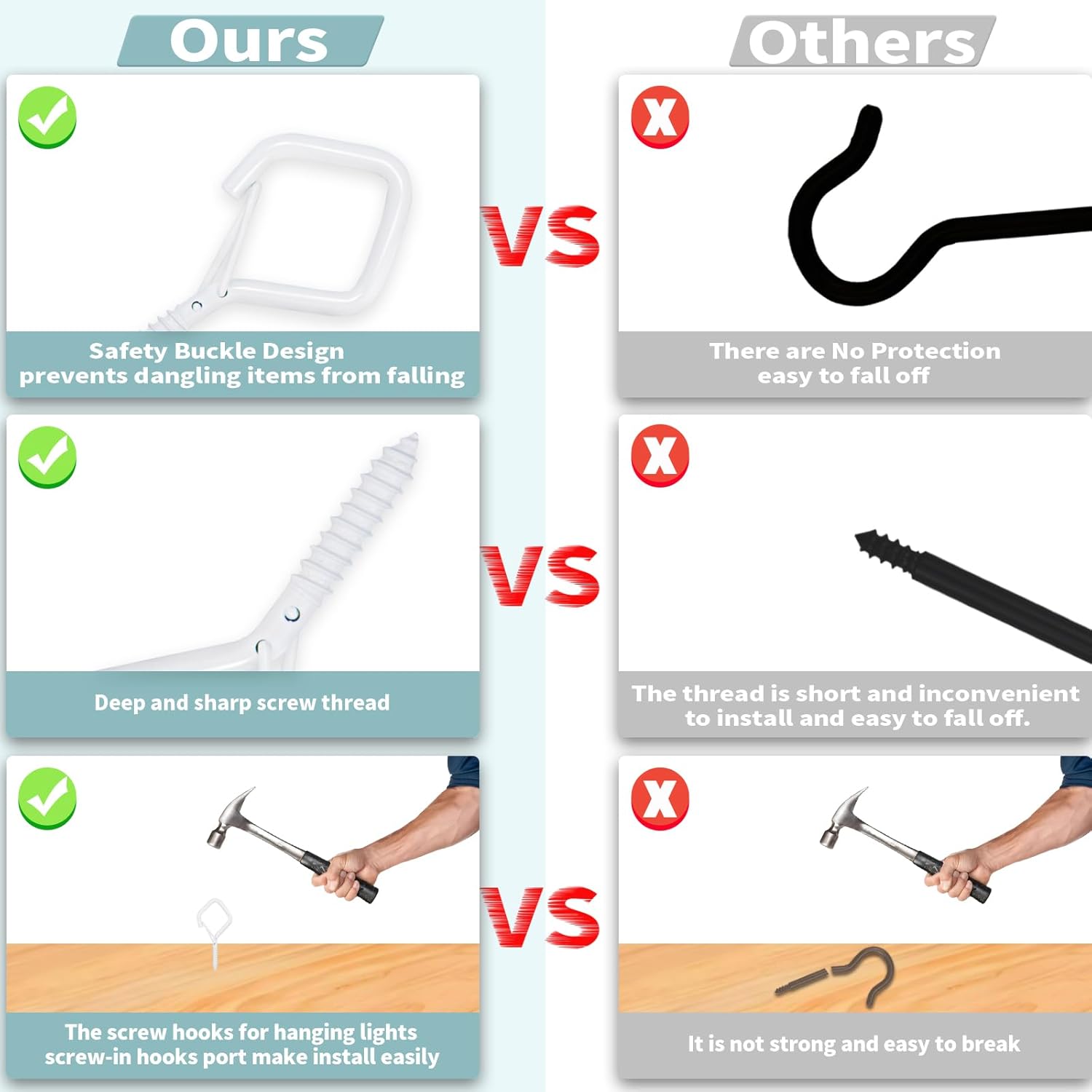 - 🔧【Easy Screw-In Installation】 Simply twist into wood, ceilings, beams, fences, or walls for instant hanging support. 2.36-inch length provides a firm hold.
