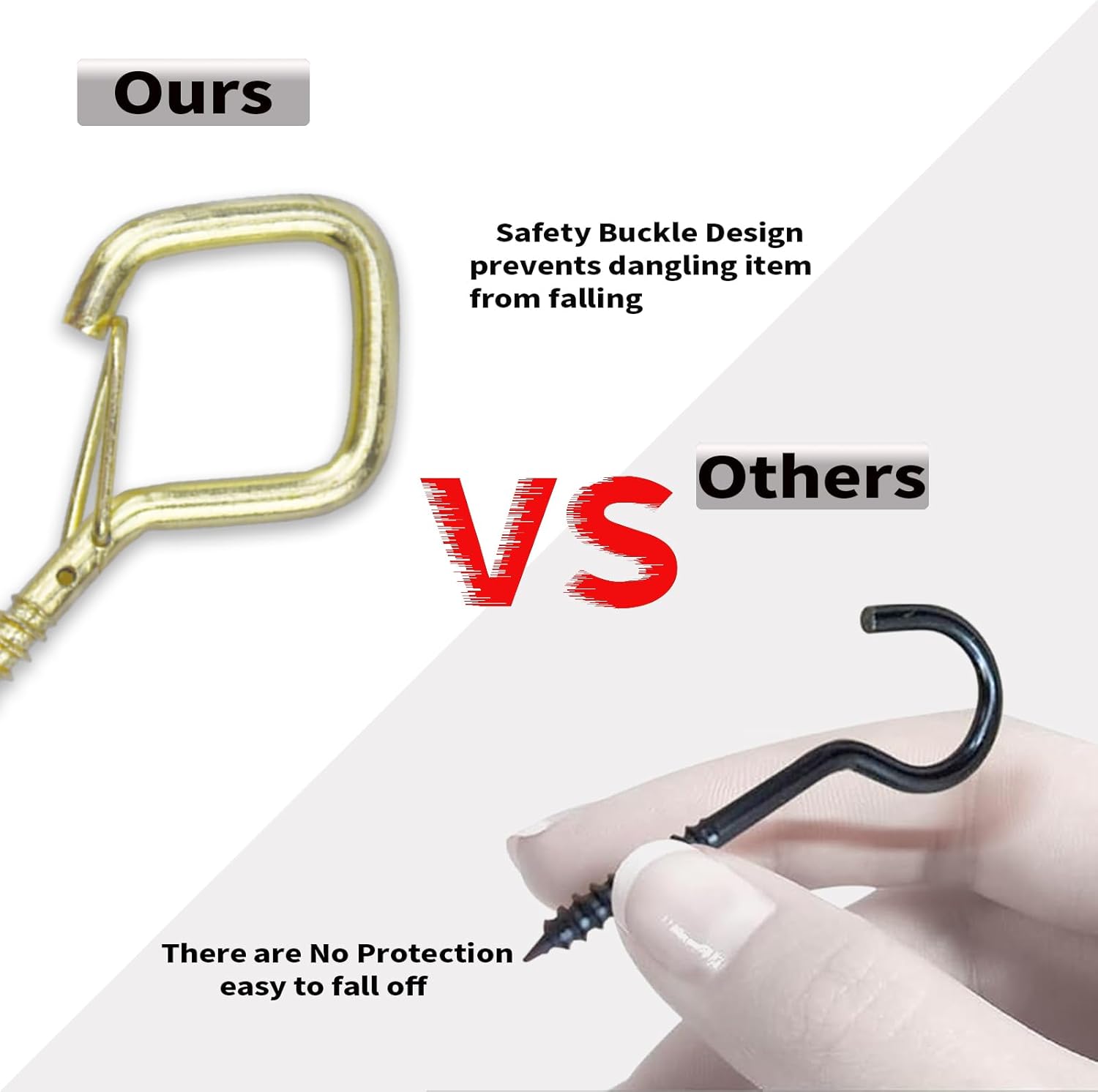 100 PCS Gold Eye Screw Hooks for Hanging Heavy Duty with Safety Buckle.Metal Ceiling Hooks for Hanging Plants Cup Wind Chime Bird Feeders Patio Lights at Indoor&Outdoor