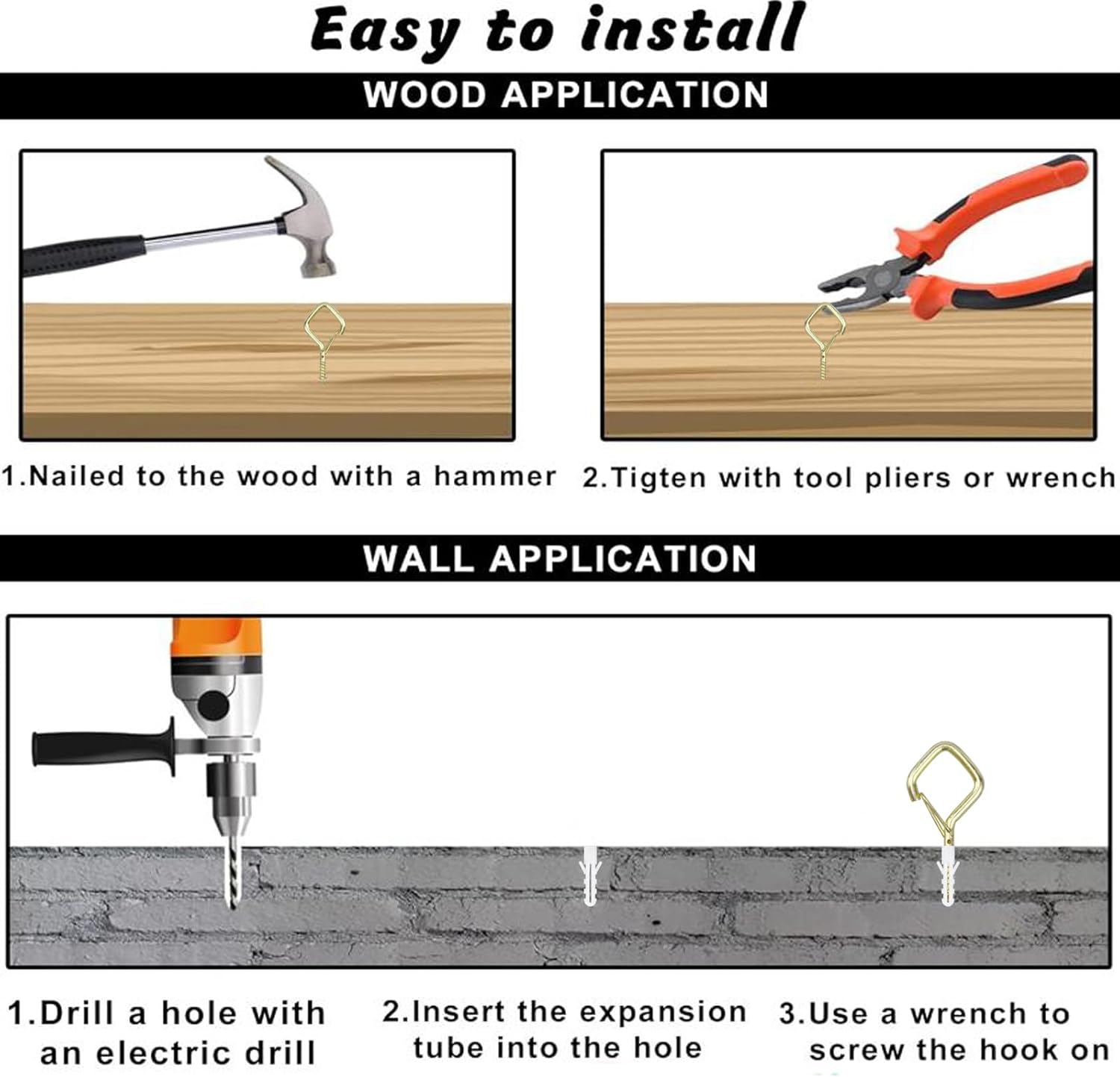 - 🔧【Easy Screw-In Installation】 Simply twist into wood, ceilings, beams, fences, or walls for instant hanging support. 2.36-inch length provides a firm hold.