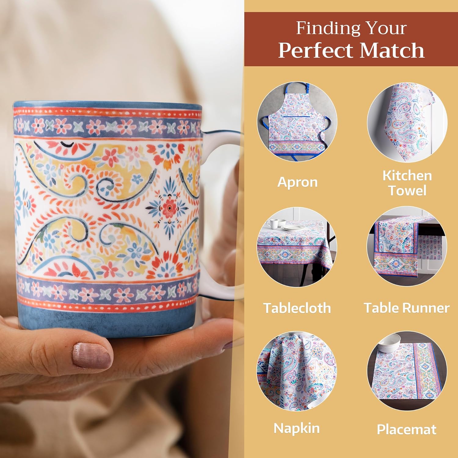 - MANY MORE TO SHOP FOR: More coordinated Aprons, Kitchen Towels, Mugs, Napkins, Oven Mitts, Placemats, Pot Holders, Table Runners, and Tablecloths are available in this design. Visit our store for more beautiful products from the house of Maison d’ Hermine.