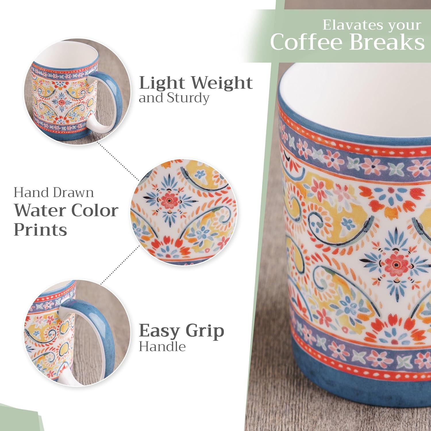 - CONVENIENT USE: Durable high quality fine bone China coffee mug with easy grip handle, well balanced and comfortable in your hand just like in the restaurant.