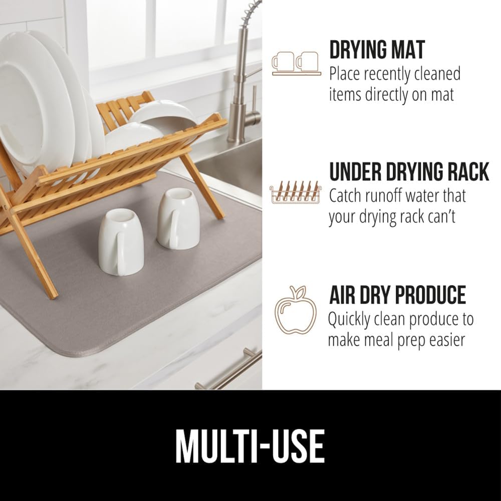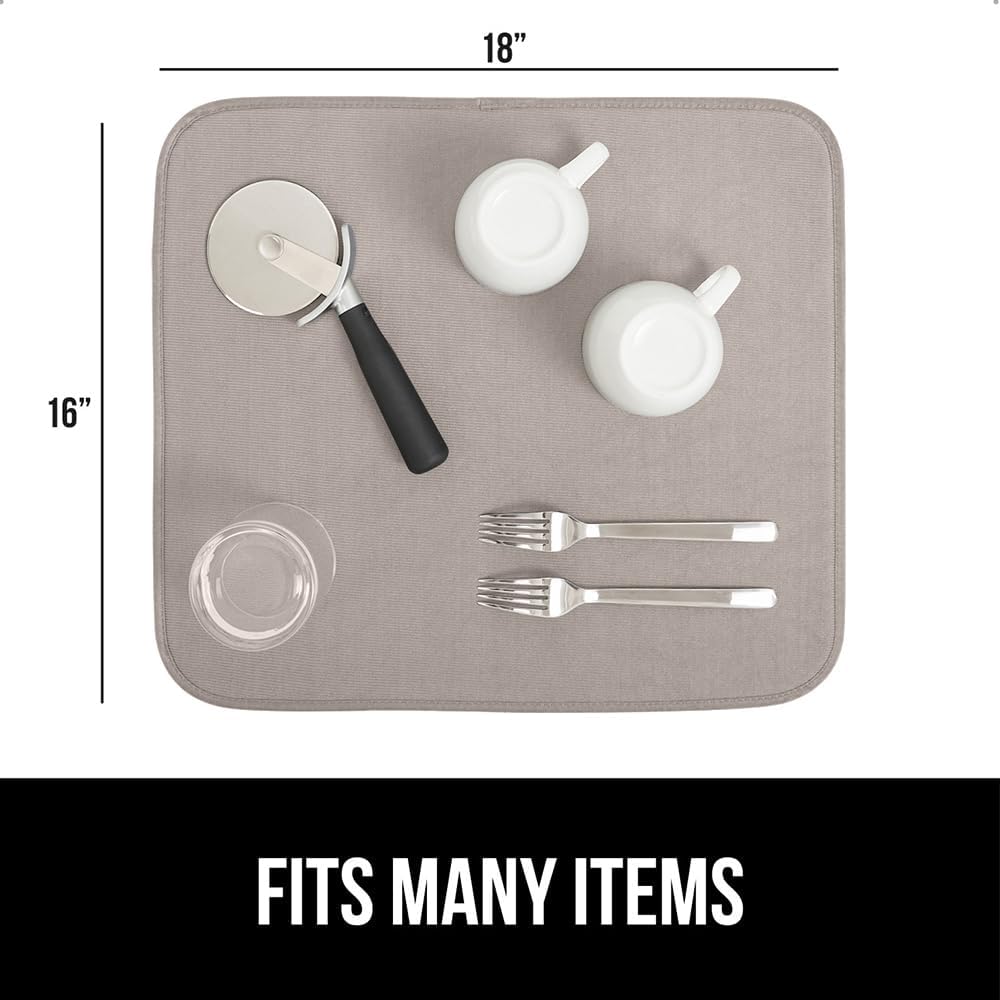 GORILLA GRIP Ultra Water Absorbent Microfiber Dish Drying Mat, Quick Dry Thick Mesh, Slip Resistant Pad for Sink Dishes or Under Rack, Kitchen Counter Accessories, 16x18, Machine Wash, 2 Pack Almond
