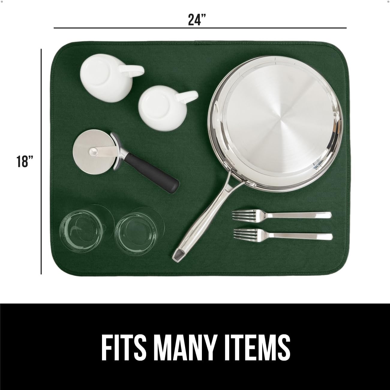 GORILLA GRIP Ultra Water Absorbent Microfiber Dish Drying Mat, 18x24, Quick Dry Thick Mesh, Slip Resistant Pad for Sink Dishes or Under Rack, Kitchen Counter Accessories, Machine Wash, Hunter Green