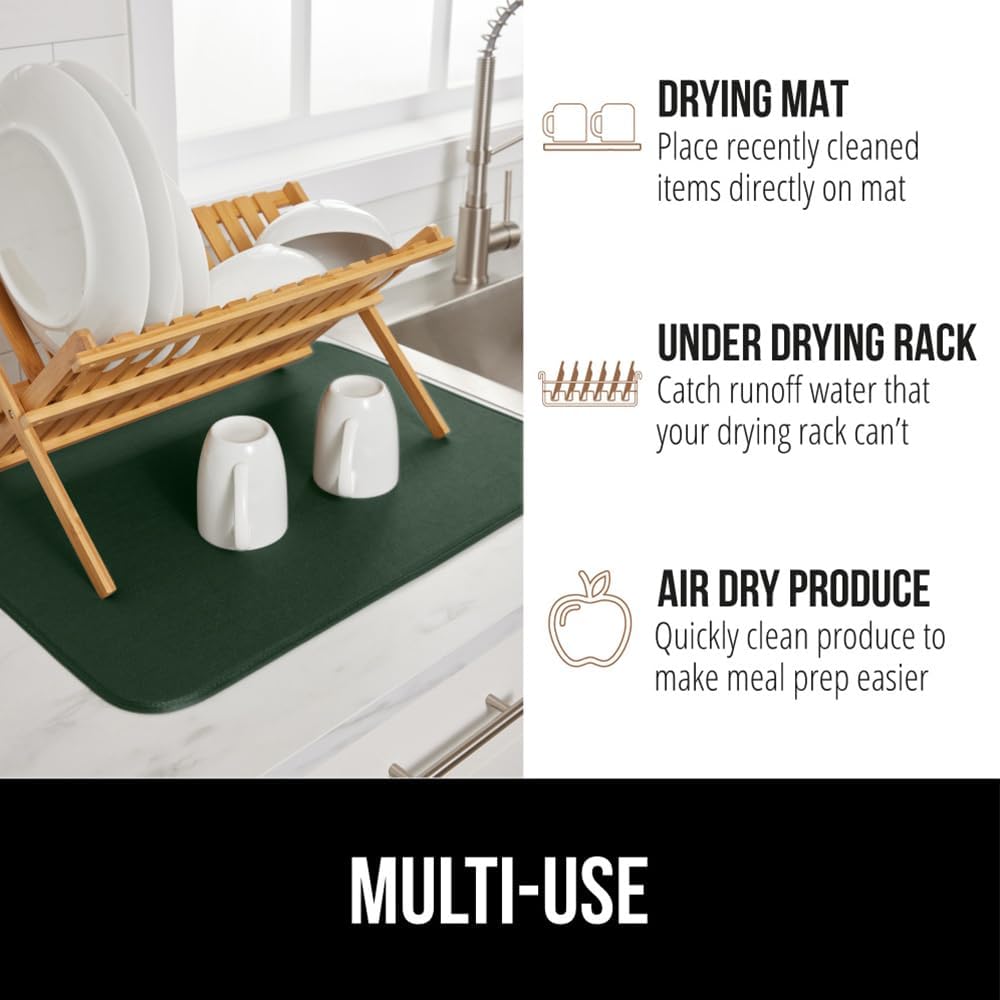 GORILLA GRIP Ultra Water Absorbent Microfiber Dish Drying Mat, Quick Dry Thick Mesh, Slip Resistant Pad for Sink Dishes or Under Rack, Kitchen Counter Accessories, 16x18, Machine Wash, Hunter Green