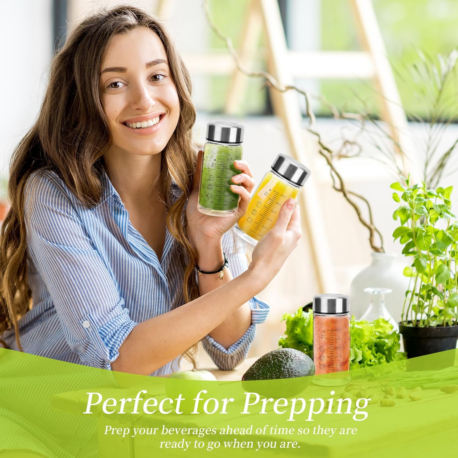 - 【Eco-Friendly and Stylish】Ditch disposable plastic containers and switch to an elegant, sustainable alternative.Our reusable glass bottles help reduce waste while adding a sleek and modern touch to your kitchen or on-the-go lifestyle.They're the perfect companion for your juicing routine!