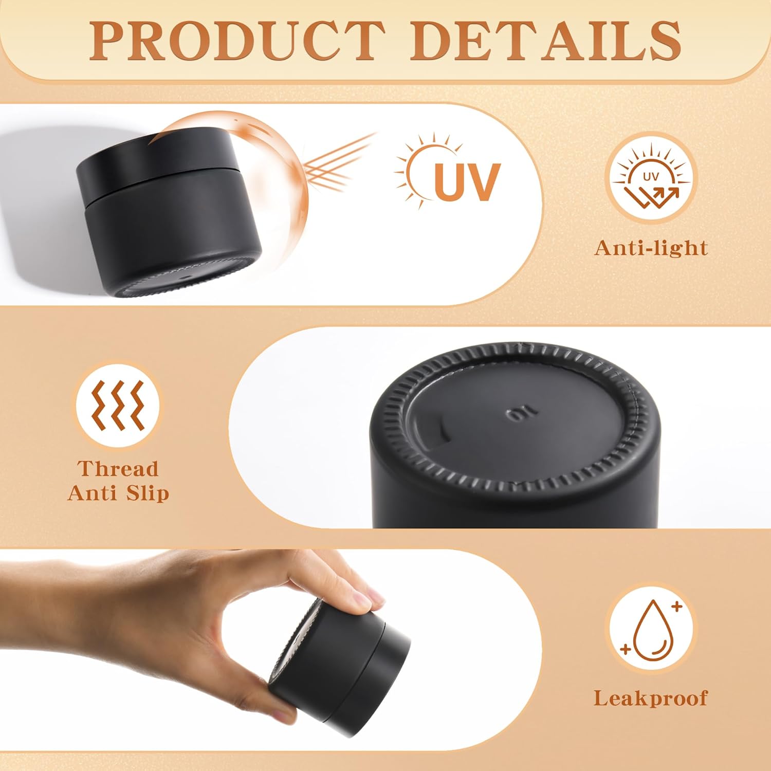 - 【Travel-Ready & Mess-Free】fits in purses and toiletry bags. Threaded lids prevent slipping, while raised jar bottoms protect against spills – ideal for gym, flights, or camping trips.