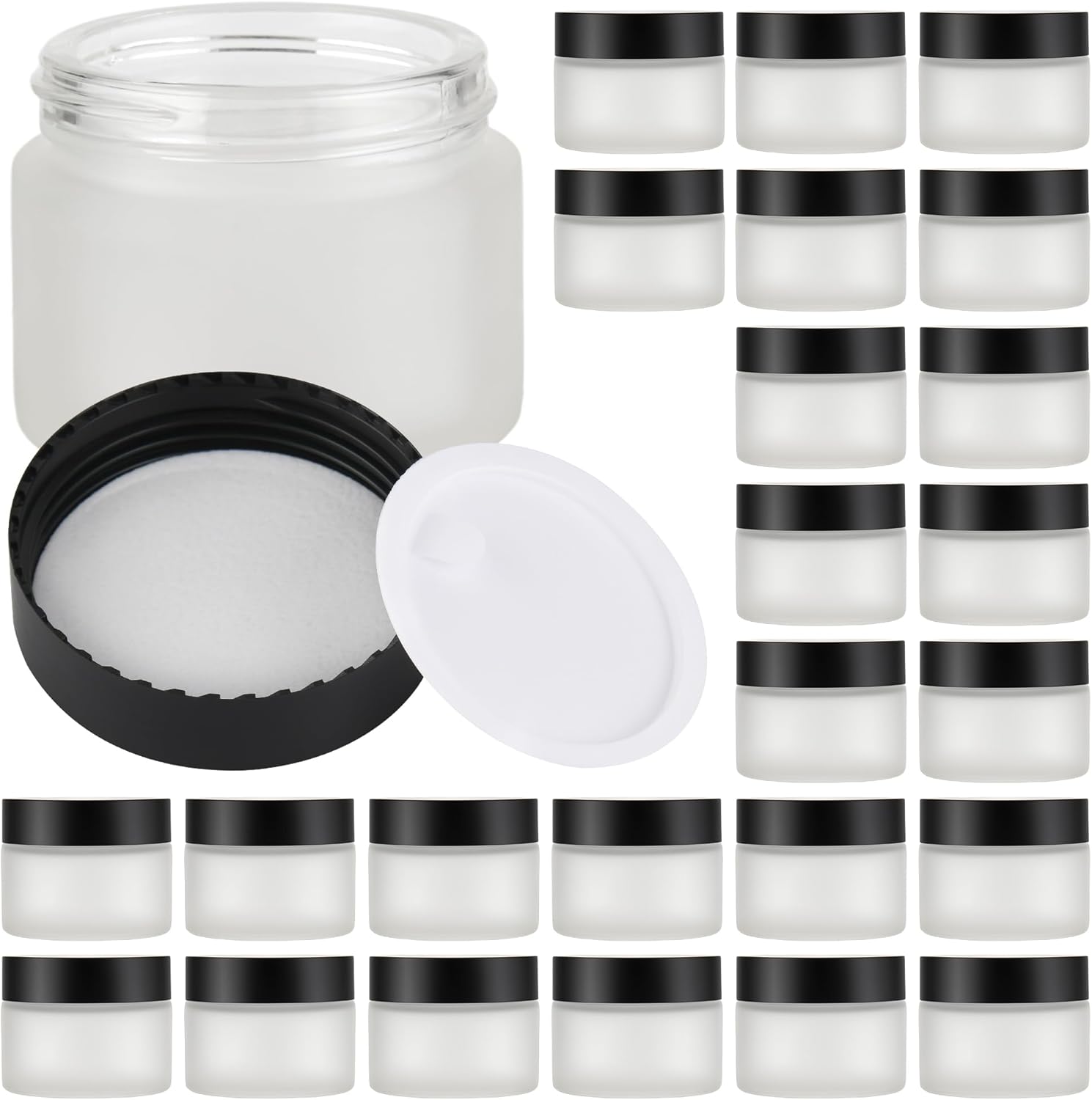 Glass Jars with Lids,Eco-Friendly Cosmetic Containers with Airtight Black Lids & Liners, Multi-Color Options for Cream, Lotion, Body Butter, DIY Skincare Travel Jars (Clear Frosted, 2oz)