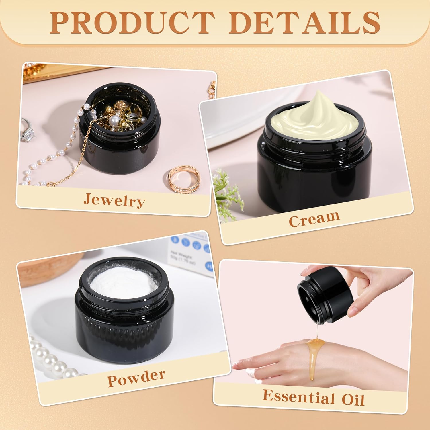 - 【Pro-Grade Organization】 Elevate your brand with luxury jars! Amber/black jars protect premium formulations, while clear jars showcase product purity. Compatible with label printers for professional branding – loved by estheticians and indie beauty brands!