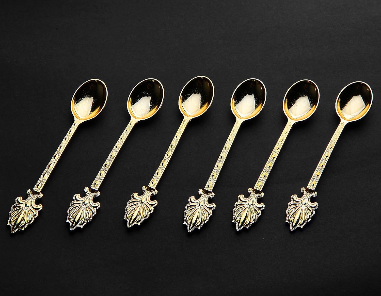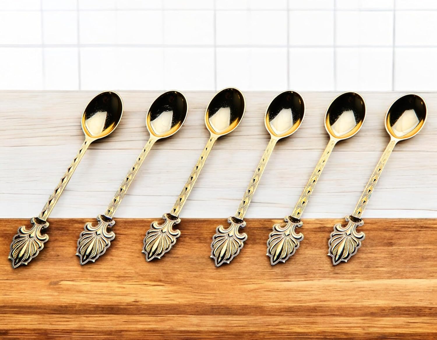 Alisveristime Turkish Tea Spoons Set – 6-Piece Zamac Ottoman-Style Decorative Spoons for Tea & Coffee (4.3”) (Gold)