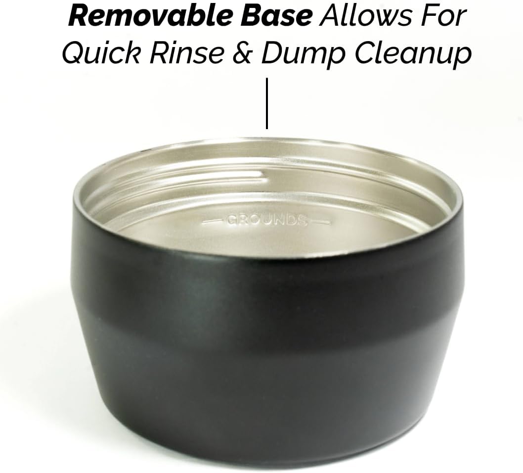 - PATENTED INSULATED REMOVABLE BOTTOM – The innovative twist-off base makes cleanup effortless—simply remove, rinse, and reset. No more digging out grounds or struggling with messy cleanups!