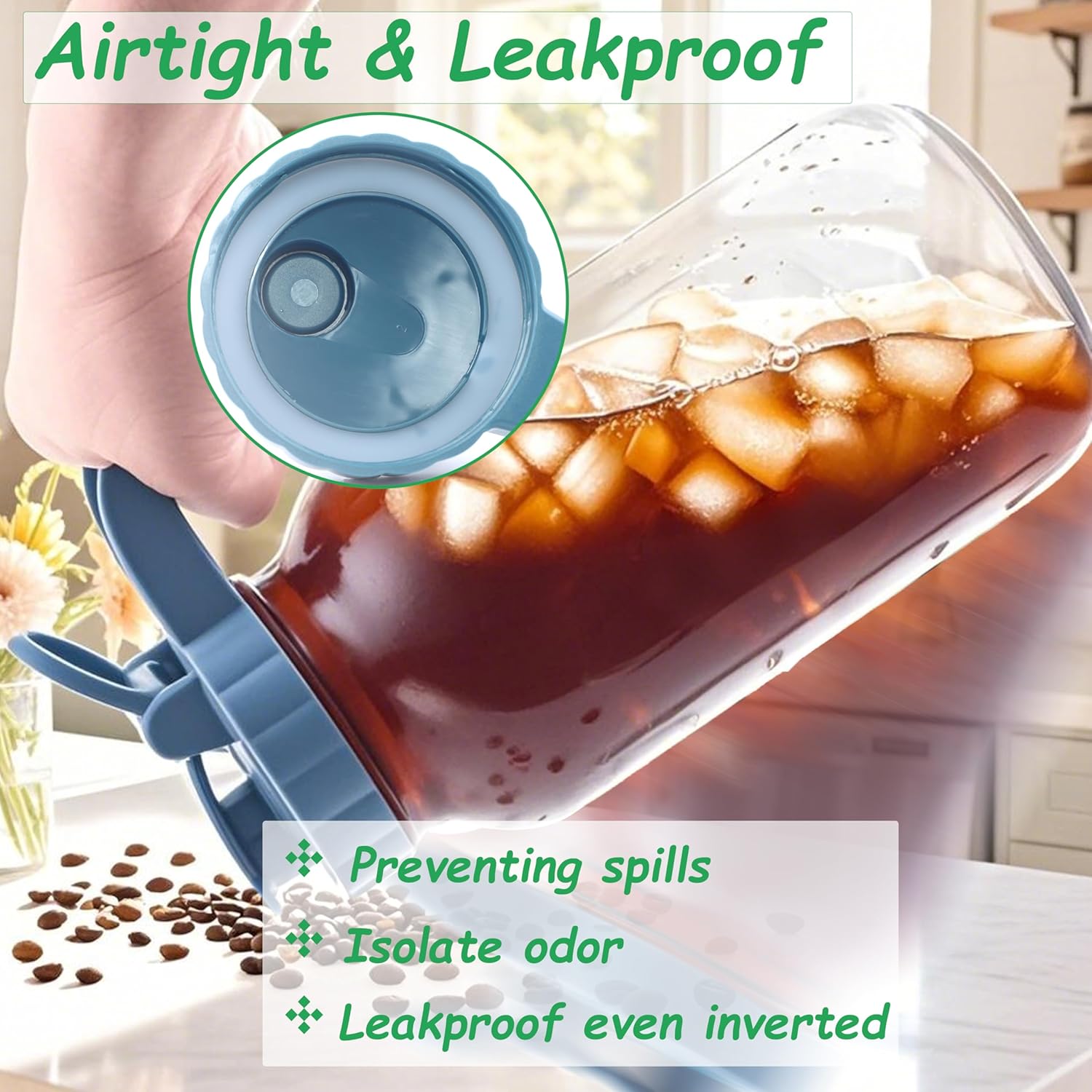 - 64 OZ LARGE CAPACITY PITCHER: The mason jar pitcher with a generous 64-ounce (half-gallon) capacity, effortlessly meets daily hydration needs for you. Brew 8-10 servings (8oz each) at once—ideal for meal prep enthusiasts, campers, families, offices, or gatherings. Eliminate constant refills and maximize efficiency in busy lifestyles. Dishwasher safe