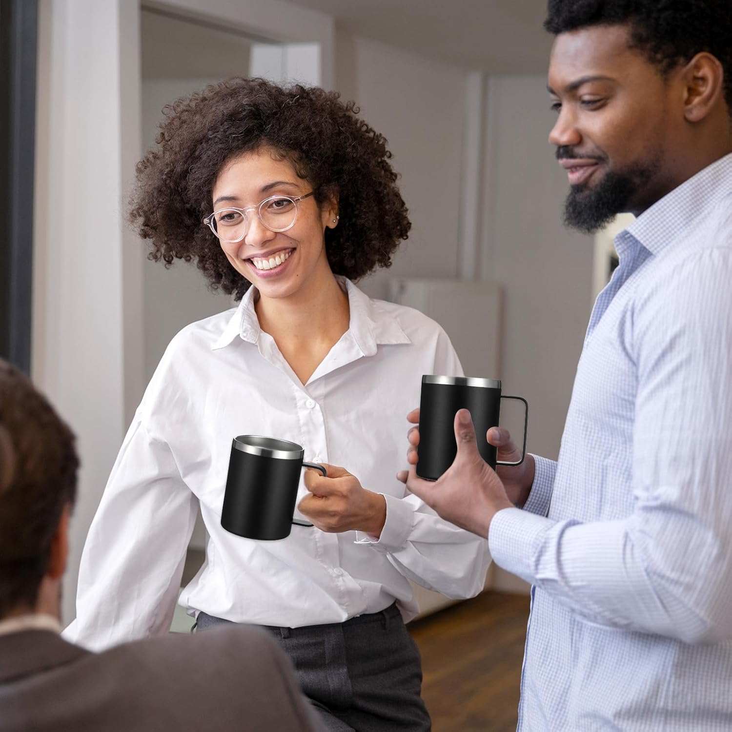 12 oz Insulated Coffee Mug Bulk with Handle, Stainless Steel Travel Coffee Mug with Lid, Double Wall Vacuum Metal Coffee Cup, Coffee Tumbler Powder Coated, Black 4 Pack