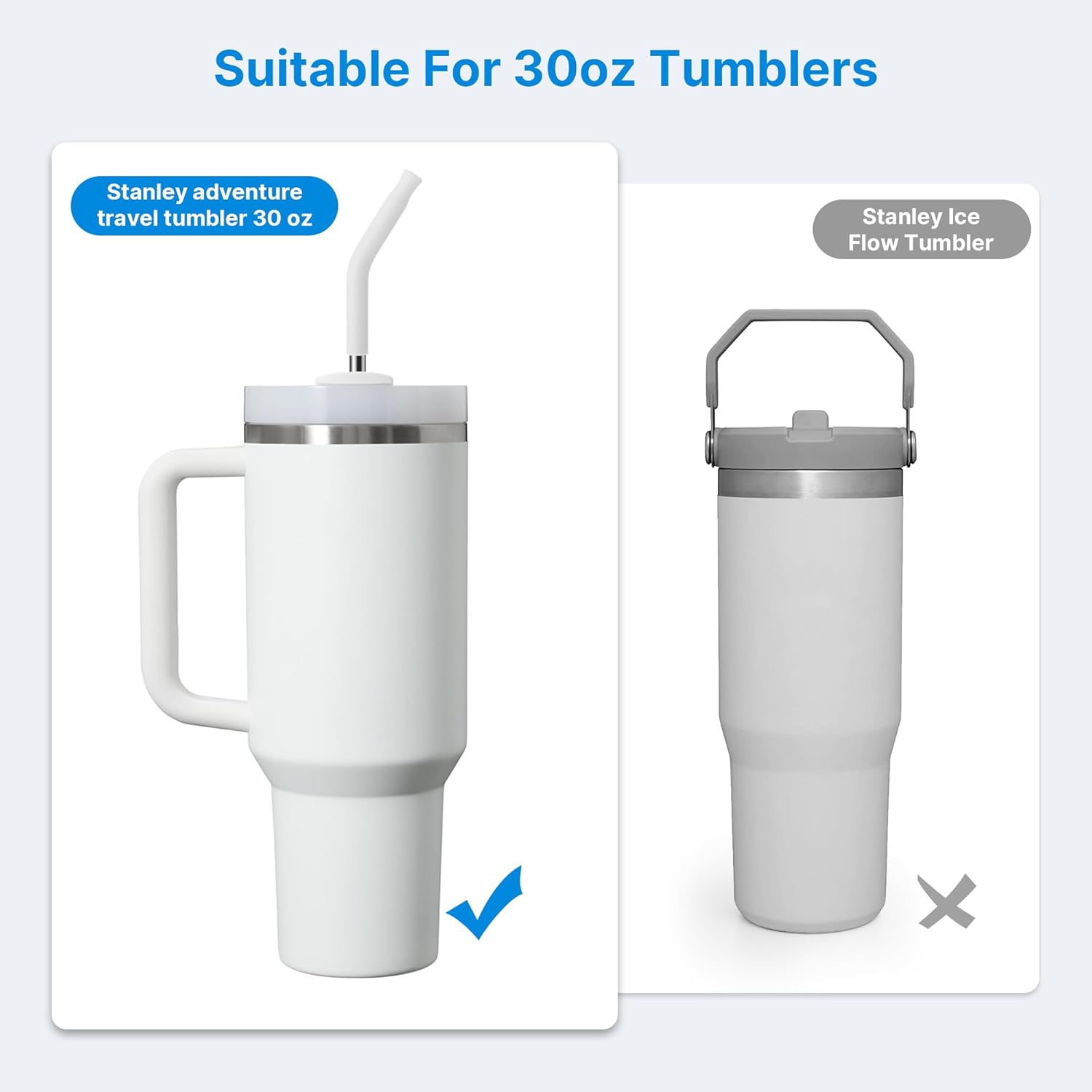 - 【Compatibility】These straws are perfect for pairing with 30 oz Stanley Quencher tumblers (H1.0 and H2.0), Stanley 30oz tumblers with handles, and Simple Modern 30oz tumblers, providing ample length for all your drinking needs (Not suitable for other brands of 30oz tumbler, please confirm your tumbler size before purchasing.)