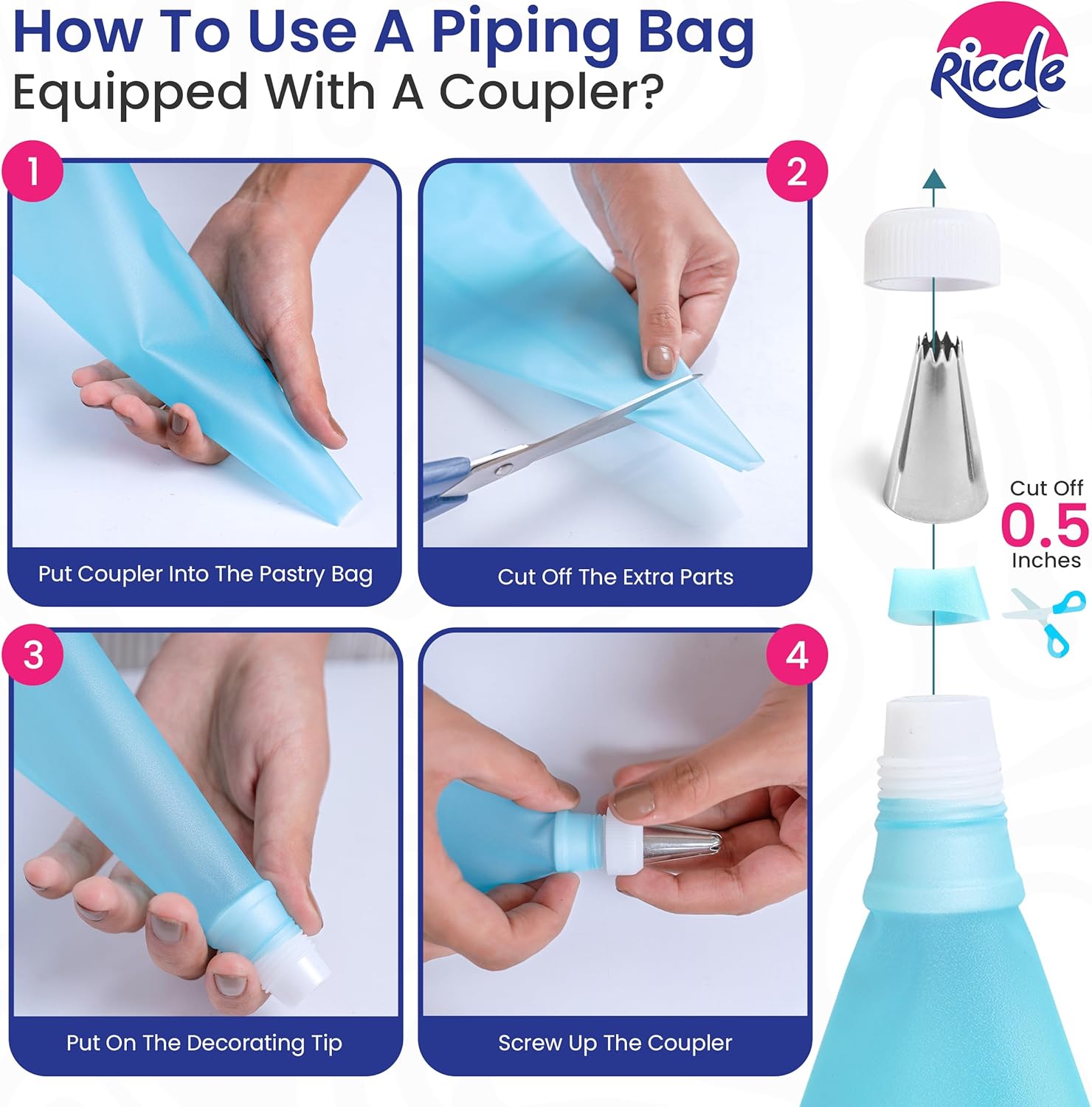 - Complete Cake Decorating Supplies: This all-in-one baking kit includes a rotating cake stand, 24 icing piping tips, 2 cake spatulas, 3 cake scrapers, 50 disposable piping bags, 2 reusable pastry bags, 4 bag ties, and 2 couplers. Perfect for all your cake decorations.