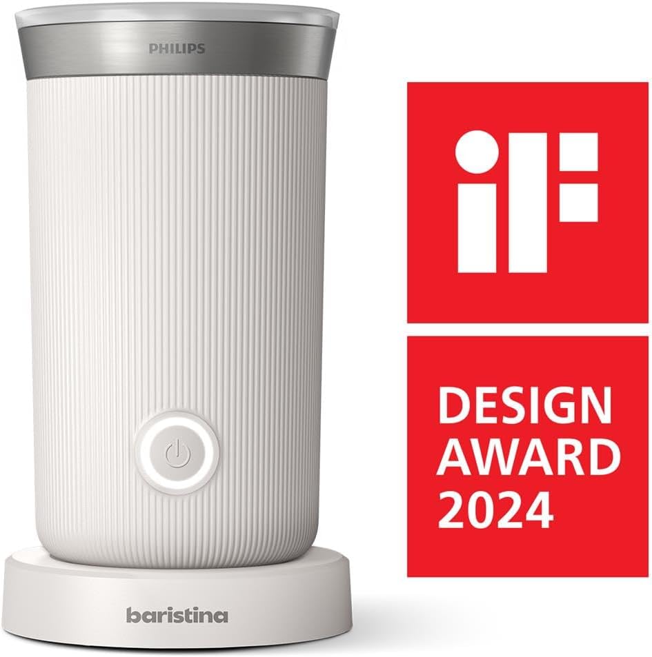 Philips Baristina Milk Frother - Foam Milk Perfectly. Hot and Cold. Dairy and Non-Dairy. Easy to Clean. for Philips Baristina Espresso Machines. Milky White (BAR311/00)
