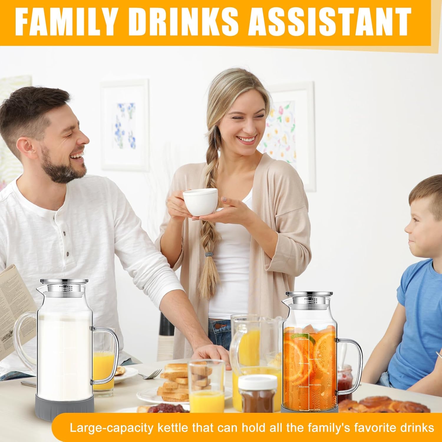 - Versatile Applications: ideal for a variety of beverages, these water pitchers are ideal for serving iced tea, infused water, fresh juices, coffee, milk, wine, and more; Their stylish design makes them suitable for both casual family gatherings and formal events; The elegant clear glass design complements any kitchen decoration, adding a touch of sophistication to your countertop