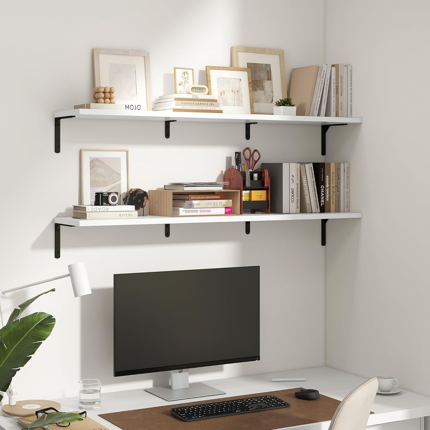 - 【Strong & Durable Construction for Long-Lasting Use】Each shelf is made from premium high-density MDF with a smooth, durable surface resistant to warping and cracking. Paired with heavy-duty black L-shaped steel brackets, these shelves provide excellent strength and stability. Properly installed, each shelf supports up to 50 lbs, perfect for books, kitchen items, and decor. Built to endure daily use in kitchens, living rooms, offices, or bathrooms, combining durability with timeless style.
