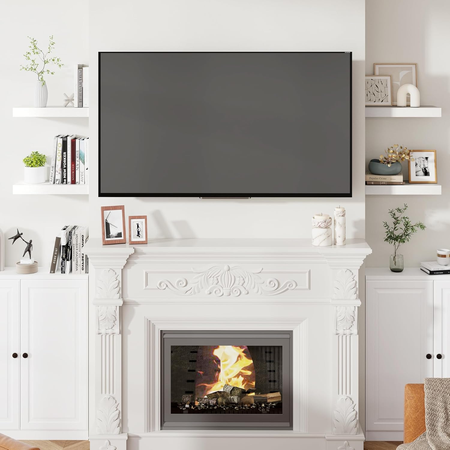 - 【Easy To Install】This white floating shelves not only come with stainless-steel galvanized invisible brackets, but also equipped a fixing screw at the bottom to fix the shelf on the support rod, which solves the problem of sliding and is not easy to damage, and can be used for a long time. Instructions, magnetic level, drywall anchors, and screws included.